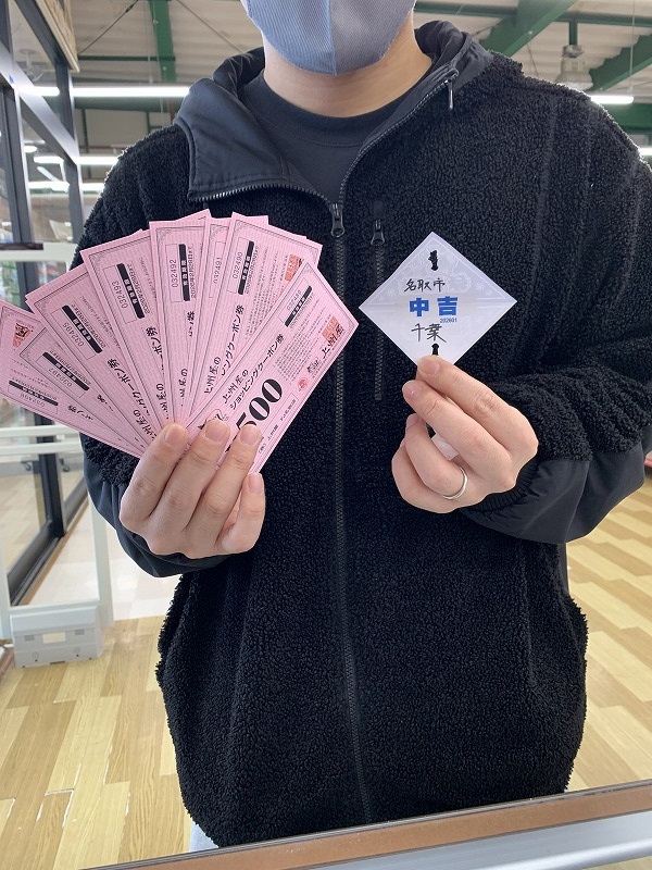 早速、☆中吉☆5,000円分のショッピングクーポン券が出ました!