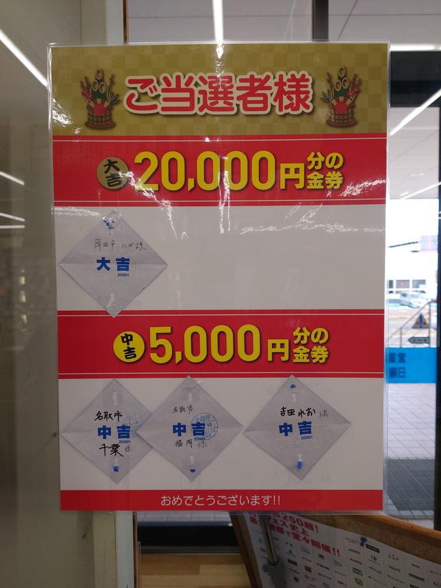 抽選券をお持ちの方、今年初めの運だめしに是非ご来店ください。