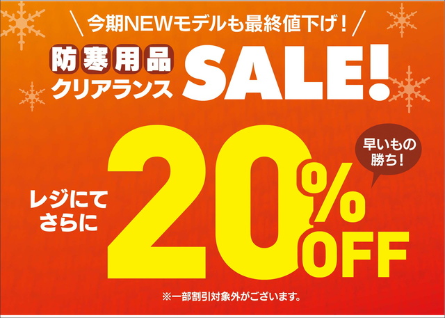 本日12/19より【防寒用品クリアランスセール】開…