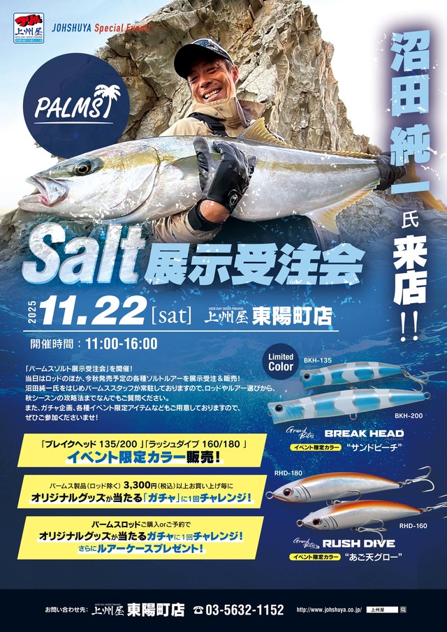 いよいよ今週末開催!沼田純一氏来店!パームスソ…