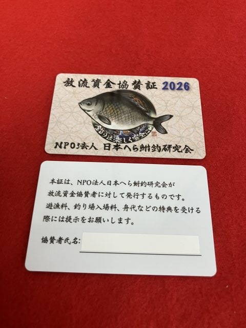 令和8年【へら鮒 放流資金協賛カード】入荷