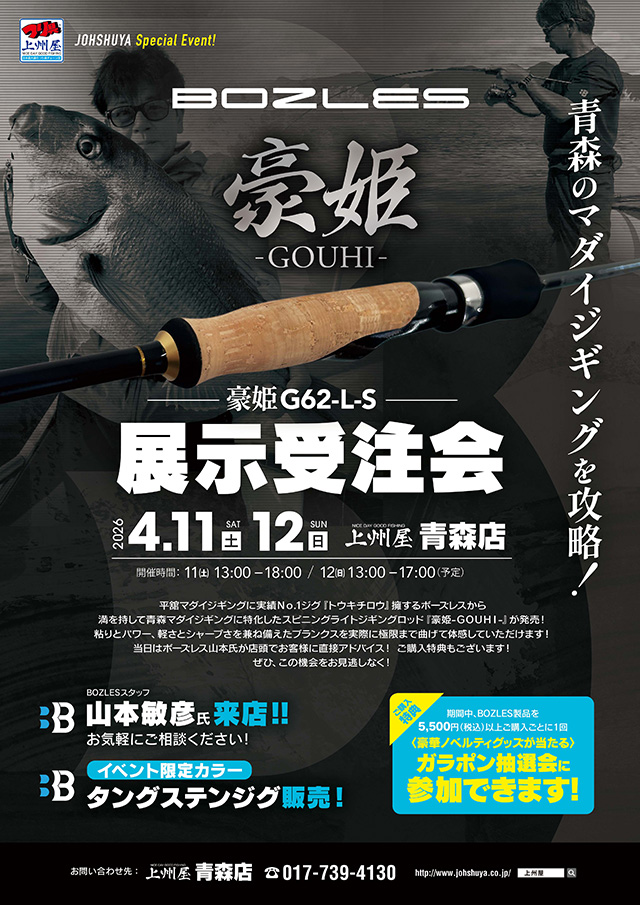 【青森店】青森マダイジギングに最適!BOZLES豪姫展示受注会!BOZLESスタッフ山本さん来店!