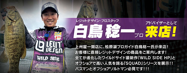イベントにはレジットデザイン・プロスタッフ白鳥稔一さんが来店同社注目のロッドについて皆様の疑問・質問にお答えします!何よりも釣り談義が好きな人ですので是非、トッププロと熱いトークを交わして下さい!!