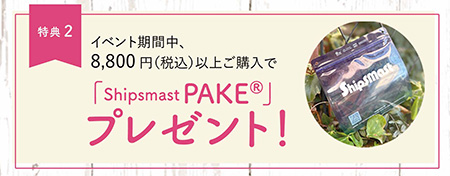 イベント期間中に対象製品を税込8,800円以上お買い上げで「Shipsmast PAKE」をプレゼント