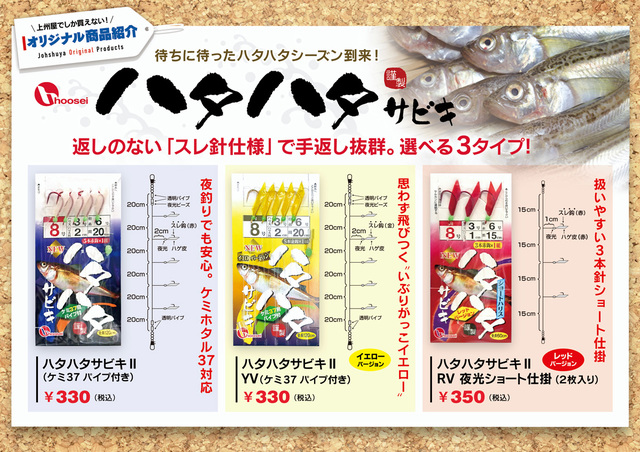 最新情報は、ハタハタ釣りが盛んな秋田および山形方面上州屋各店の店舗ブログまたは店頭ご来店の際に直接ご確認下さい!※業務の支障となりますので、お電話での頻繁なお問い合わせはご遠慮願います。