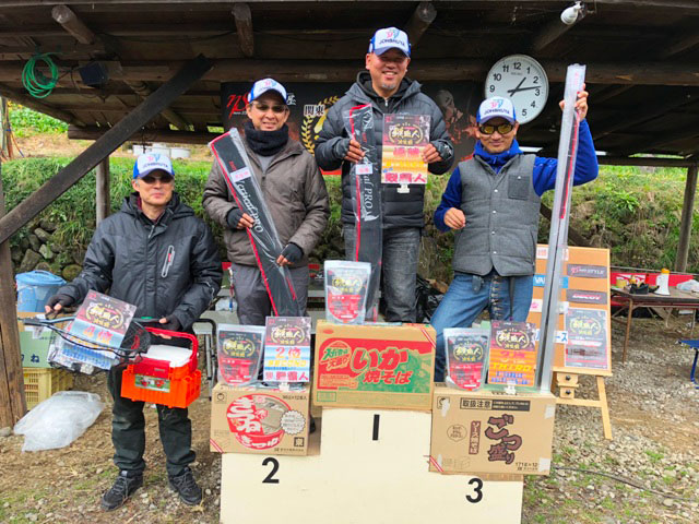 表彰式の後はお楽しみのじゃんけん大会!協賛メーカーからの多数の協賛品や、足柄キャスティングエリアからも特別割引き券の進呈が!参加者の皆様全員に何かしらの賞品を進呈することができました!また、なんと大会参加者様からも大会ロゴ入り缶バッチや矢切ネギなどの大変嬉しい差し入れまで!様々なプレゼントにより大盛況となりました!