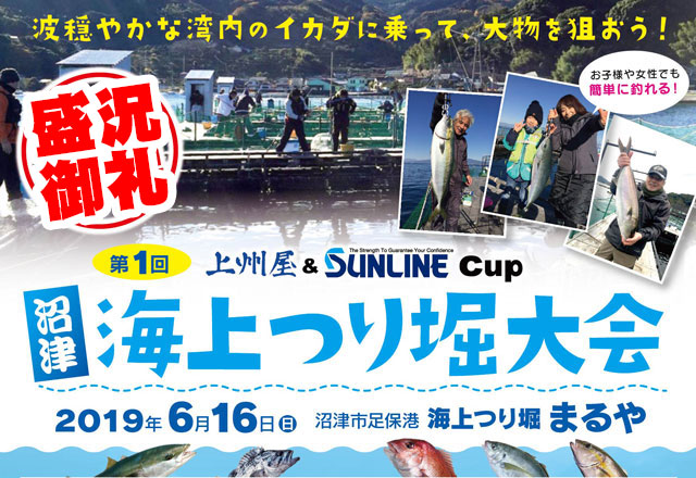 2019年6月16日(静岡県沼津市足保港の海上つり堀まるやにて、湾内イカダに乗って大物を狙う第1回沼津海上つり堀大会 上州屋&SUNLINEカップが開催されました!