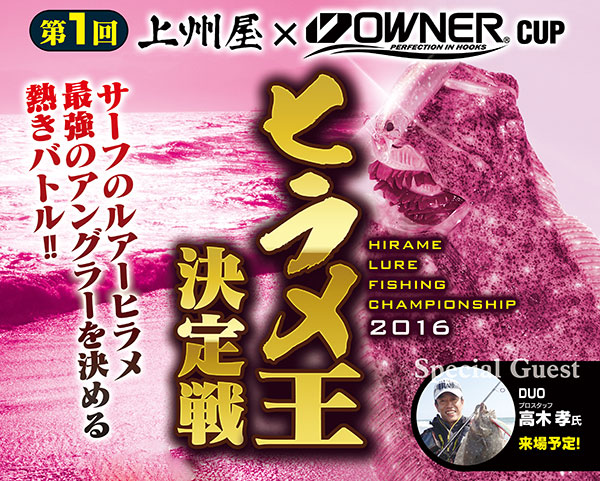 大変残念ながら、10/9(日)遠州サーフにて開催を予定しておりました第1回釣り大会「ヒラメ王決定戦 上州屋&OWNERカップ」は強風波浪の影響により開催中止となりました。