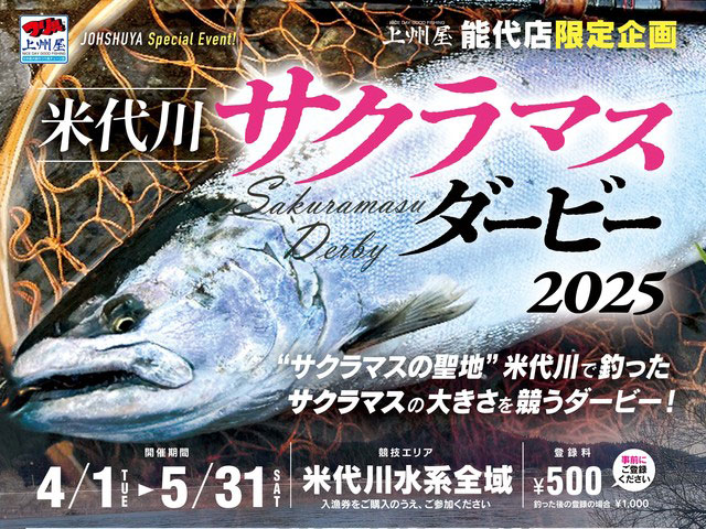 【宮城県】遡上が活発となる2月上旬~GW(ゴールデンウィーク)にかけて例年好評〔宮城5店舗限定〕サクラマスダービーを開催!どうぞ皆様奮ってご参加下さい!