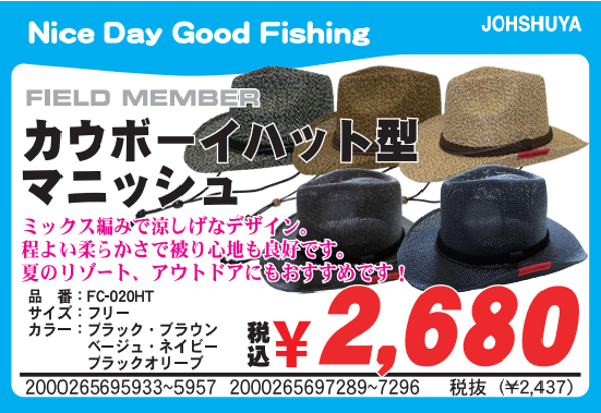 FIELD MEMBER“フィールドメンバー”シリーズより、「カウボーイ型マニッシュFC-020HT」を2023年3月下旬~4月上旬発売します!