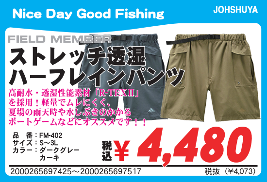FIELD MEMBER(フィールドメンバー)「ストレッチ透湿ハーフレインパンツFM-402」発売!