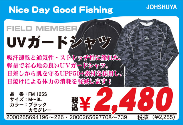 FIELD MEMBER“フィールドメンバー”シリーズより、吸汗速乾とストレッチ性に優れた、心地良いフィット感の「UVガードシリーズ」を好評販売中です!