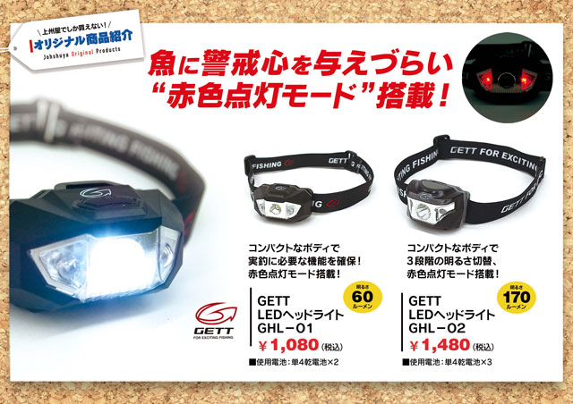 GETT(ゲット)より魚に警戒心を与えづらい“赤色点灯モード”を搭載した「LEDヘッドライトGHL-01/GHL-02」を2023年6月より販売!