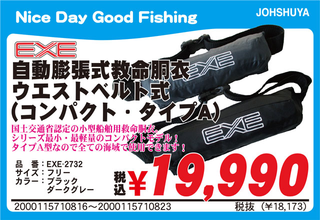 RYOBI“EXE(エグゼ)シリーズより、シリーズ最小&最軽量タイプA型自動膨張式ライフジャケット「EXE-2732(ウェストタイプ)」が登場します!