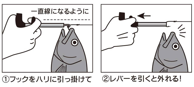 ◆魚体に触れずにハリを外せるので魚へのダメージも軽減、毒魚や危険魚も安全に処理できます。