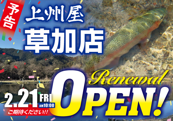 上州屋草加店、店舗改装による2/20(木)臨時休業および2/21(金)リニューアルオープンのお知らせ。