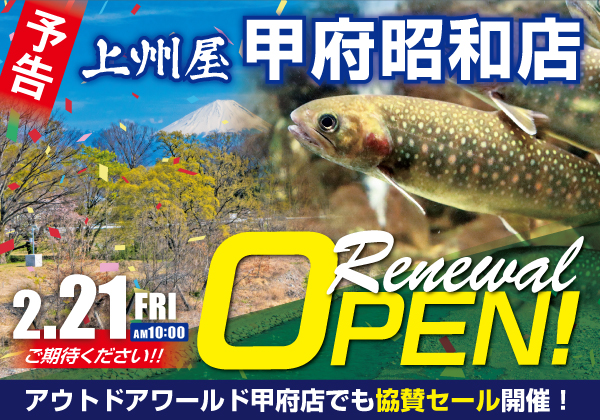 この度、上州屋甲府昭和店は2025年2月21日(金)店内品揃えを強化しリニューアルオープンさせて頂くことになりました。