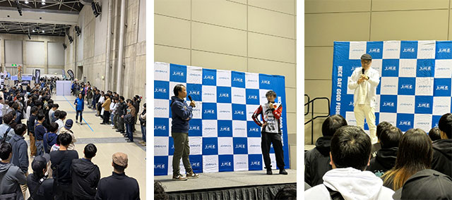 さらに今回は様々な出展ブースに上州屋スタッフがマイクセット持参で押しかけて質問質問!周囲の皆様に各メーカーさんの魅力や注目の新製品をお披露目する「突撃インタービュー」も実施させて頂きました。