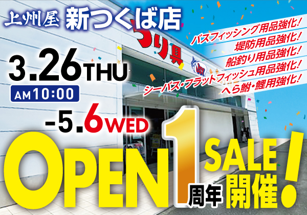 3/26(木)~5/6(水・祝)上州屋新つくば店にてOPEN1周年セール開催!