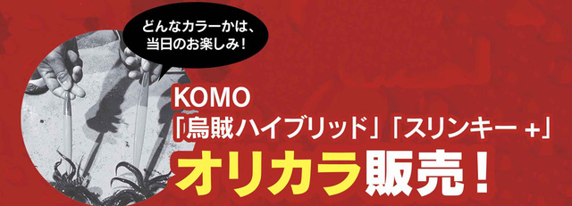 人気のKOMOジグ「烏賊ハイブリット」、「スリンキー+」のオリカラを限定販売!〇ッ〇ヘッドと〇〇ー夜光の割合と発光度合いをオリジナル化!今シーズンの実釣にても釣果を出しております!どうぞお楽しみに!