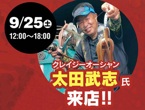 9/25(土)クレイジーオーシャン太田武志さん来店予定!
