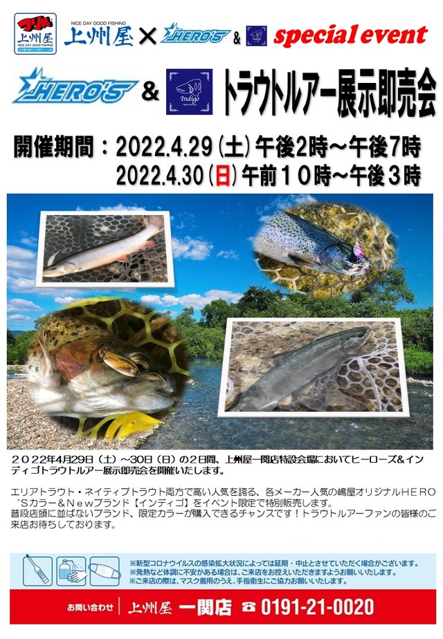 【一関店】HERO’S&Indigoトラウトルアー展示即売会!
