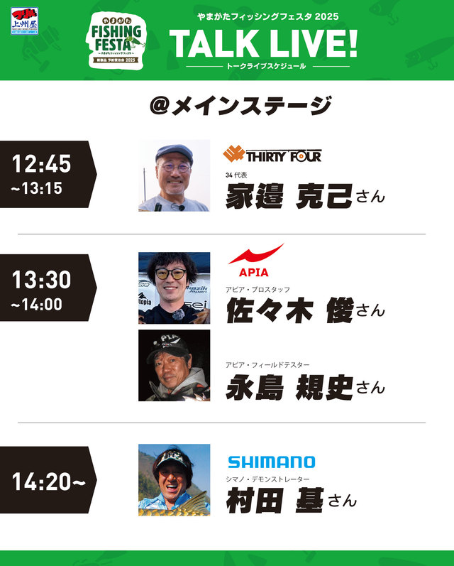 ・13:30~14:00⇒アピア・プロスタッフ佐々木俊さん&アピア・フィールドテスター永島規史さんトークライブ