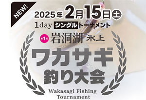 今年はシングルとペアの2本立て!2025年上州屋&バリバスCUP 岩洞湖氷上ワカサギ釣り大会は、2月15日()シングル部門2月16日()ペア部門、2日間に分けて開催いたします!