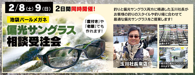 【2日間同日開催!】2月8日(土)、9日(日)2日間の各日11:00~17:00(予定)は、池袋パールメガネ玉川社長が来店しての“度付”偏光グラス相談受注会も開催します!鮎に最適な“度付”の偏光グラスについて相談できますので、こちらもお見逃しなく!