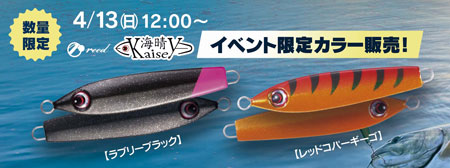 また、4月13日(日)は13:00より中禅寺湖や猪苗代湖で数々の実績を残している海晴のイベント限定カラーを販売いたします!こちら数量限定となりますので、お早めにお願いします。
