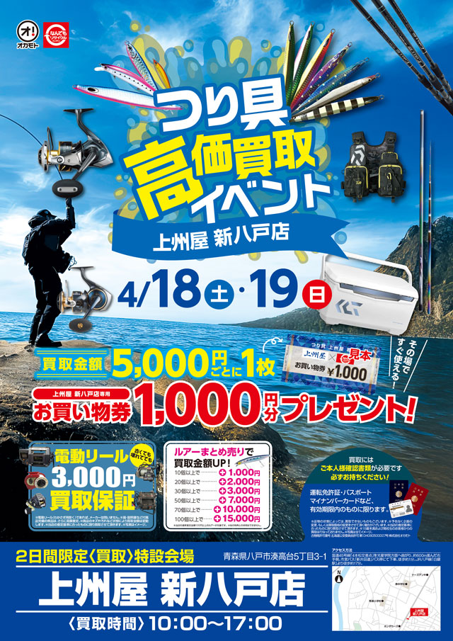 の2日間、上州屋新八戸店にてつり具高く買います!「期間限定、出張買取イベント」を店頭開催いたします!