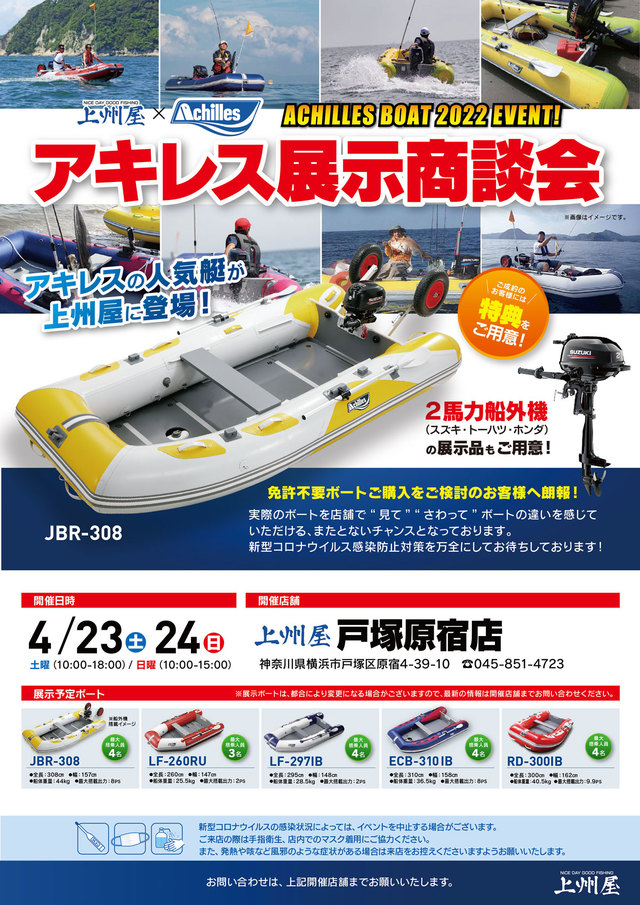 【戸塚原宿店】アキレス2022免許不要ボート“店頭”展示商談会!