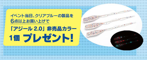 今回イベントで、クリアブルー対象製品6点以上お買い上げで、「アジール2.0」非売品カラーを1個プレゼント!