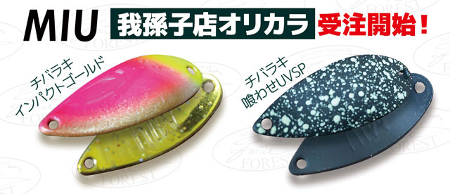 期間中はフォレスト社イベント限定カラーのスプーンを販売する他、当店オリジナルカラー「チバラキインパクトゴールド」「チバラキ喰わせUVスペシャル」のサンプル展示&予約の受付を行います。