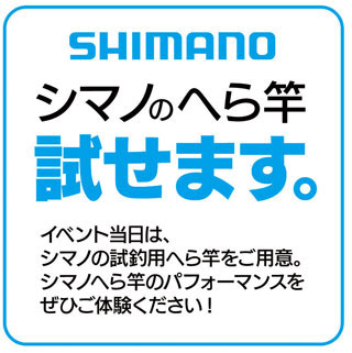 今回、試釣用にシマノへら竿を多数ご用意させて頂く予定です。またちょっとした「早掛け」、「シークレット大会」といったイベントの他、全員参加の「抽選会」も開催予定!ビギナーさんも大歓迎、遠慮なくご参加ください!