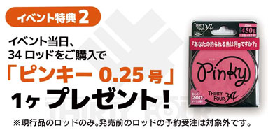 今回イベントにて34製ロッド購入のお客様にピンキー0.25号を1ヶプレゼント!