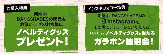 今回イベント期間中に「ダンシェイディーズ」商品をお買い上げのお客様に、ノベルティグッズをプレゼント!