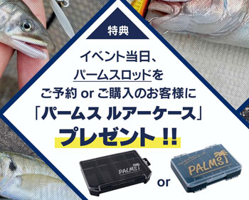 今回イベントにてパームスロッドをご予約またはご購入のお客様にパームスルアーケースプレゼント!
