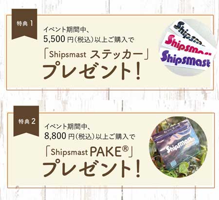 イベント期間中に対象製品を税込5,500円以上お買い上げで「Shipsmastステッカー」をプレゼント!