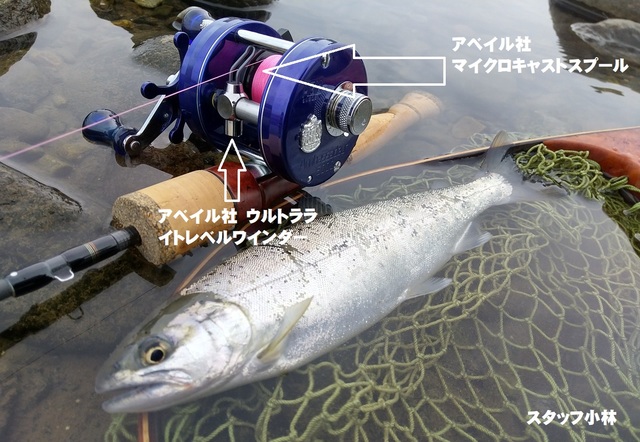 一例としてノーマルでは軽量ルアーを飛ばすのが困難なオールドアンバサダーも、アベイル社の「マイクロキャストスプール」や「ウルトラライトレベルワインダー」を組み込むと、5㎝ミノーを簡単にキャスト出来るようになります!渓流ベイトフィネスリールのチューニングに興味のある方は是非遊びに来てください。