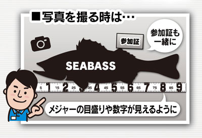 ◇競技方法:新潟県内の釣り場にてルアーで釣り上げたシーバス3匹の全長寸の合計を競います。