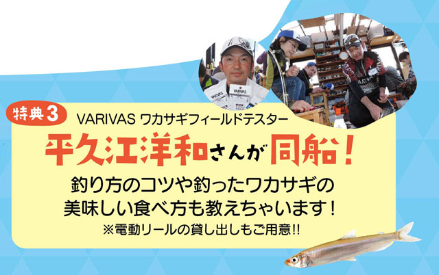 ワカサギ釣りのエキスパート!VARIVASワカサギテスター平久江洋和さんが同船!プロならではの一歩進んだテクニックを伝授いたします!釣り方のコツやワカサギの美味しい食べ方など、ワカサギに関することなら何でもご質問下さい!