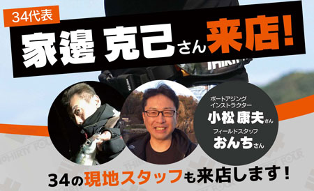 2024年3月2日(日)13:00~17:00、上州屋上越店にて34展示即売会を開催!34代表、家邊克己さんと、地元新潟のアジングに精通するボートアジングインストラクター小松康夫さん、フィールドスタッフおんちさんが来店します!