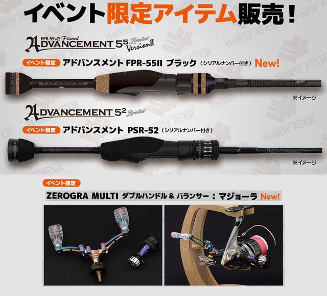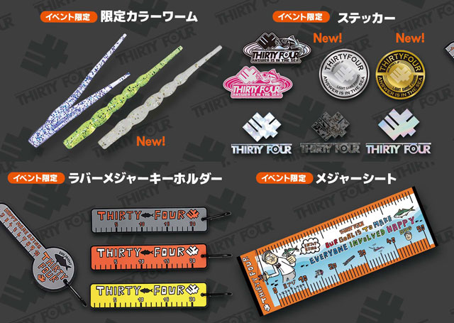 今回イベントにて34製ロッド購入のお客様にピンキー0.25号プレゼント!また、34対象製品を2,000円(税込)以上お買い上げで「ナイフ」「ロッドベルト」「ケース」「ステッカー」etc.が当たる「ガラポン抽選会」にチャレンジ!