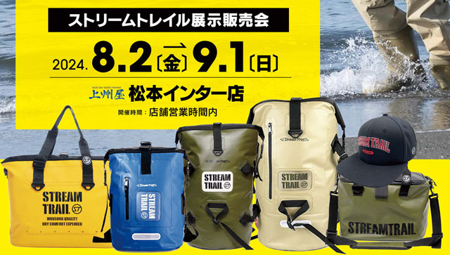 2024年8月2日(金)~9月1日(日)の期間中、上州屋松本インター店にてストリームトレイル展示販売会を開催!店内に特設POPUPコーナーが登場します!