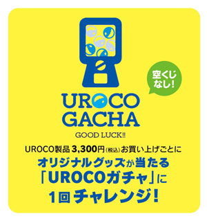 イベント期間中にUROCO製品3,300円(税込)お買い上げ毎に、オリジナルグッズが当たるガチャに1回チャレンジ!