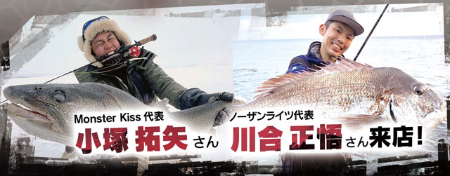 また、怪魚ハンター小塚拓矢さんが率いるモンスターキスのマルチピースモバイルロッド「ハンターズ」がモデルチェンジ!!4月以降発売予定のハンターズを全機種展示しての展示受注会を同時開催します!直接見て触ってご覧頂ける大チャンスです!