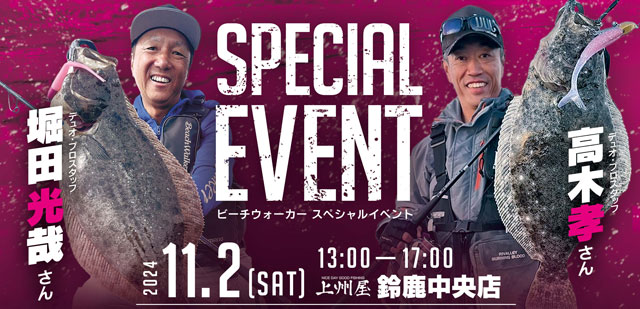 元祖ヒラメハンターことDUOプロスタッフ堀田光哉さんと、同じくサーフルアーの名手高木孝さんが来店してサーフルアーの疑問・質問について何でもお答えします!