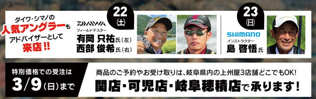 ※商品のご予約やお受け取りは、岐阜県内の上州屋3店舗(関店、可児店、岐阜穂積店)どこでもOK!早期予約特別価格での受注は3月9日(日)までとなります。