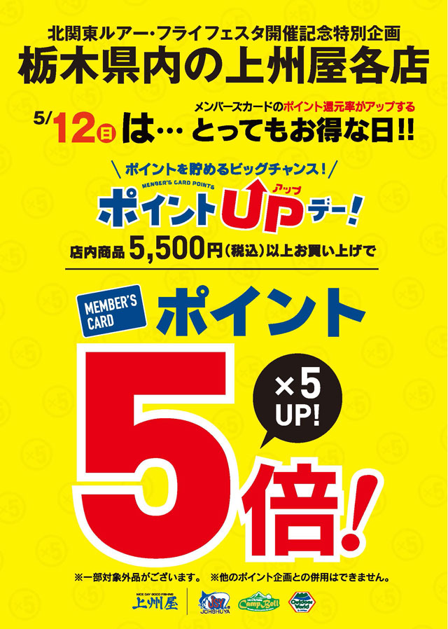 ※栃木県内上州屋各店のみ開催となります。※一部対象外品がございます。※他のポイント企画との併用は出来ません。